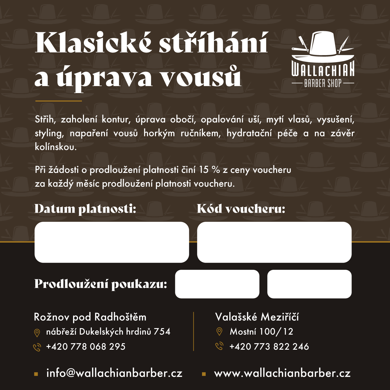 Podrobný popisStřih, zaholení kontur, úprava obočí, opalování uší, mytí vlasů, vysušení, styling, napaření vousů horkým ručníkem, hydratační péče a na závěr kolínskou.