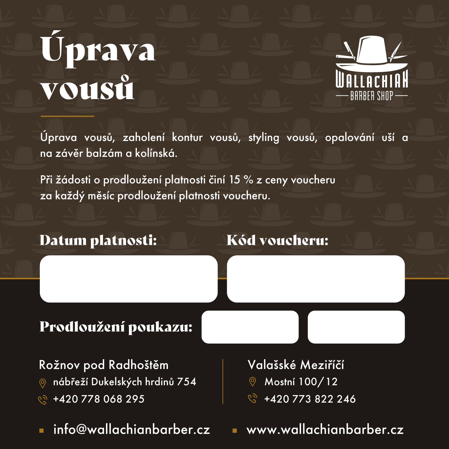 Podrobný popisÚprava vousů, zaholení kontur vousů, styling vousů, opalování uší a na závěr balzám a kolínská.